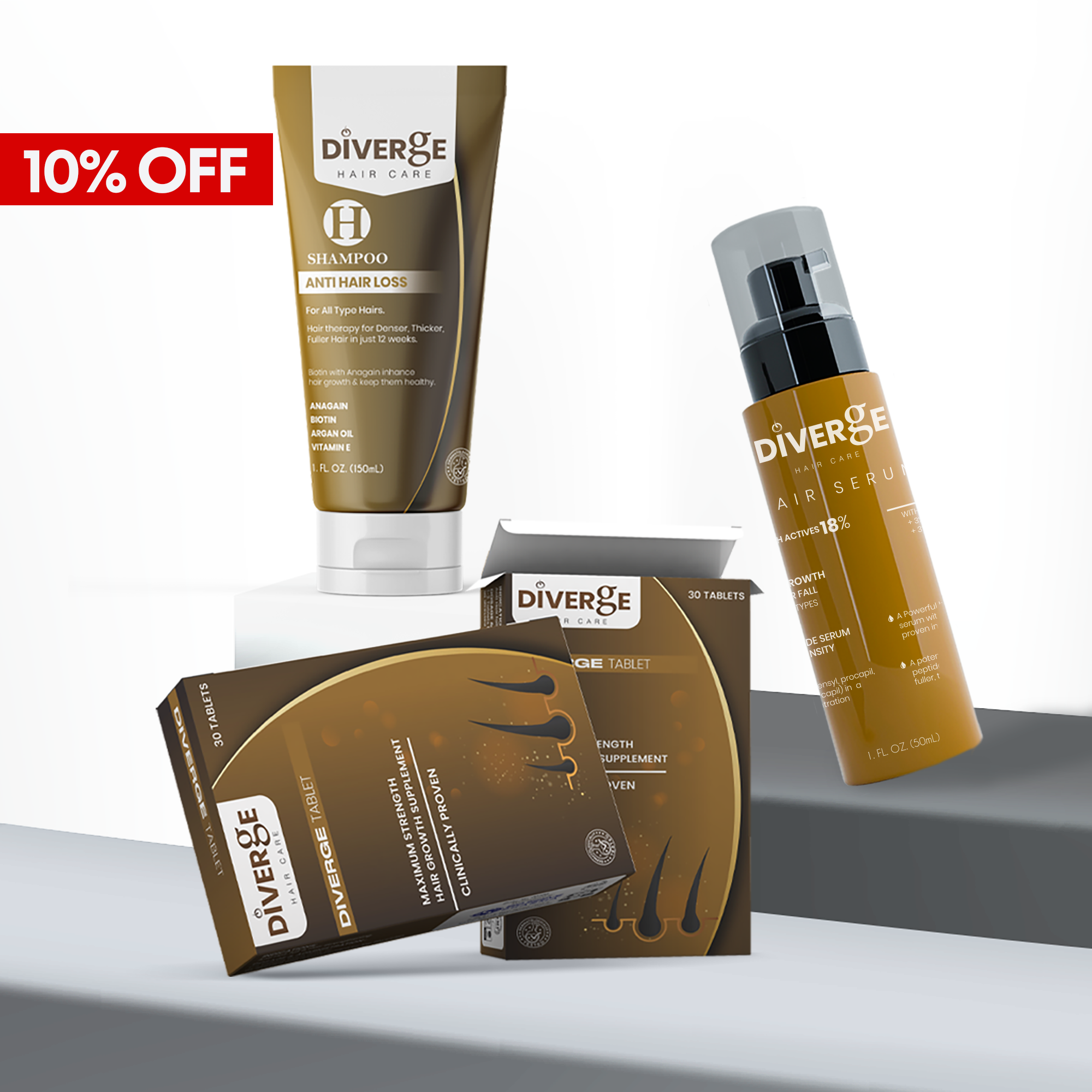 - Diverge Hair Serum: Activates follicles and improves hair density and hair regowth